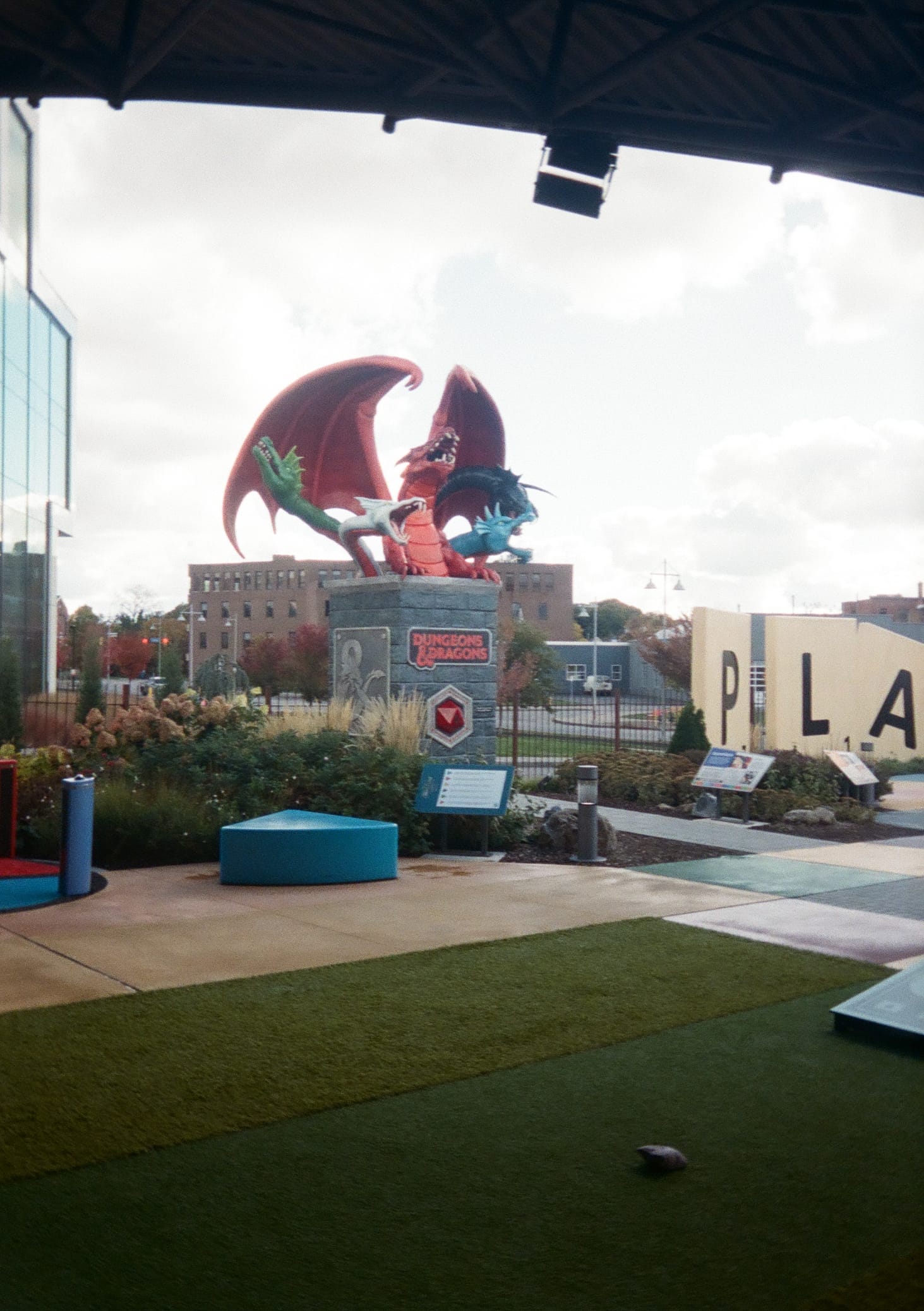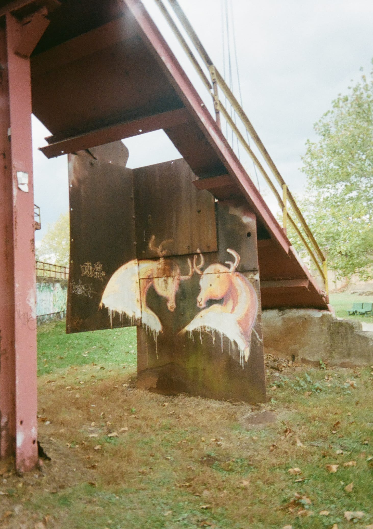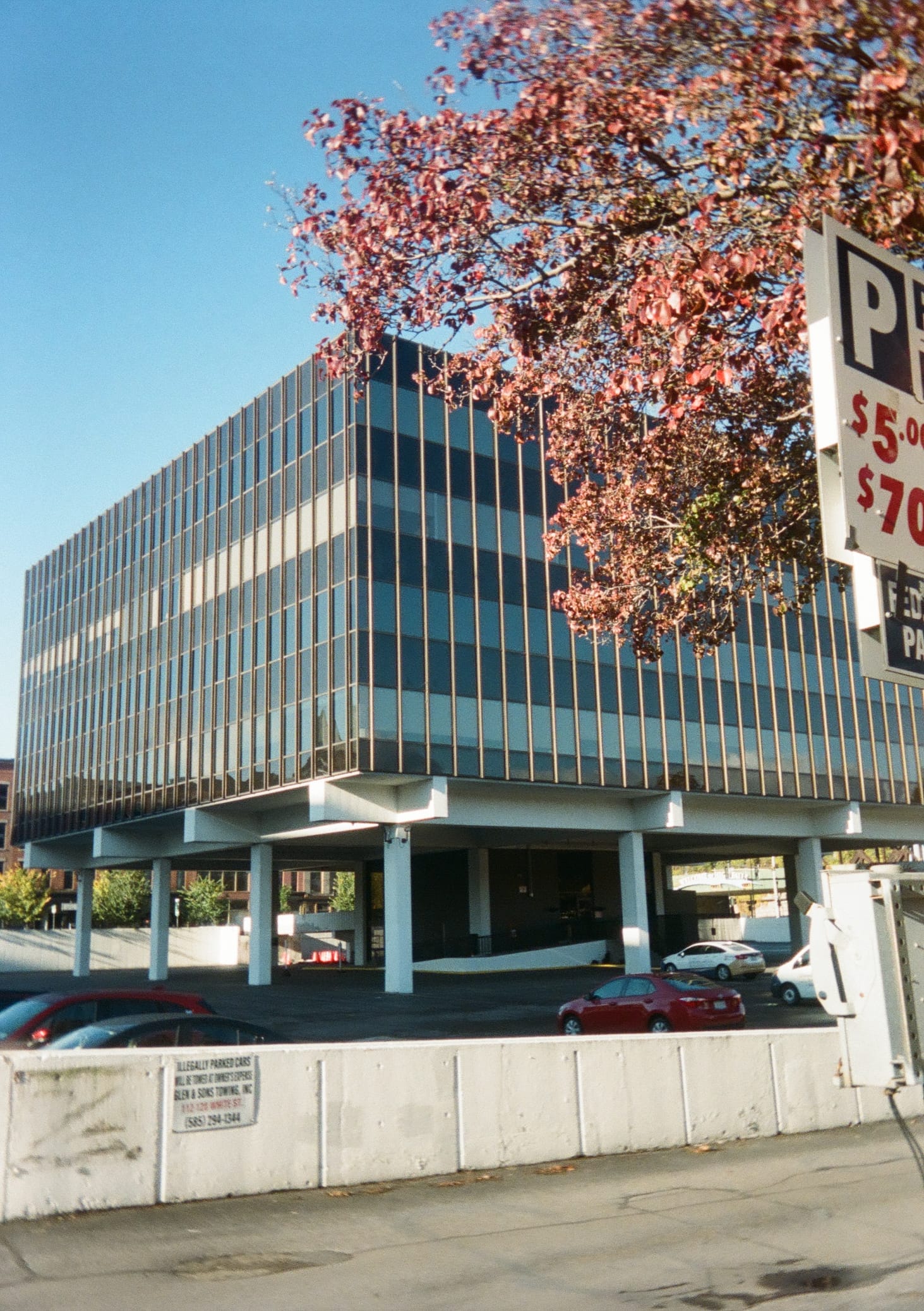 In Rochester I got to have a friend show me around the city, which is the historical home of the Kodak corporation, which still has the Kodak signage on a beautiful old building, though you can't make it out here because half-frame photos do not offer a lot of detail at distance: